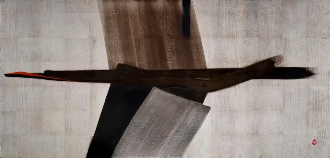 朱色圓印 “桃” 於右下角,題《Beyond》款 “TOKO SHINODA” 於背面