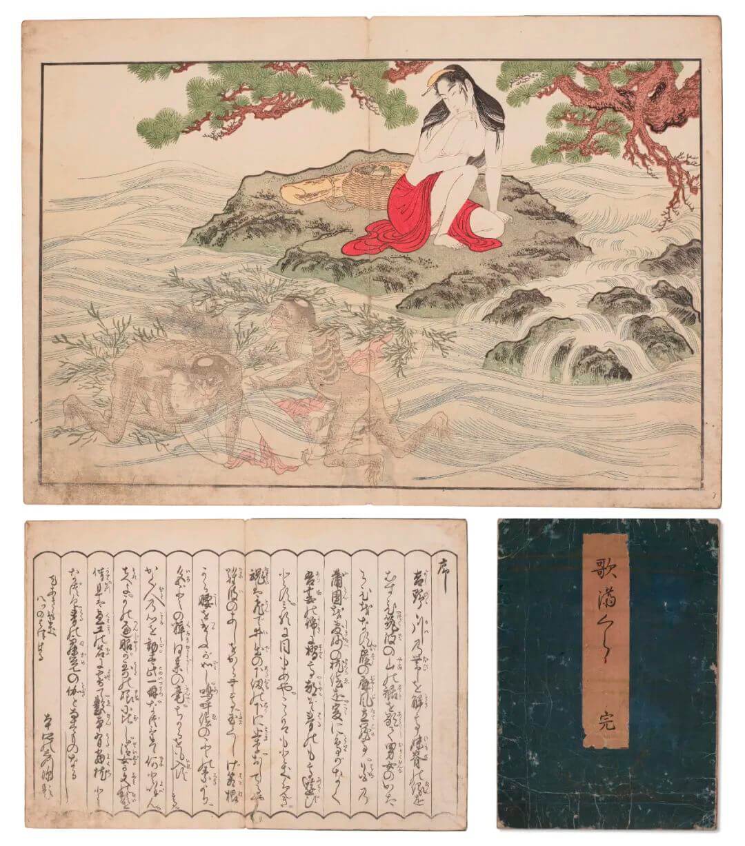 木刻版畫書,全套十二張加序文及後述,藍色封皮橙色題紙,蔦屋重三郎出版,1788年1月