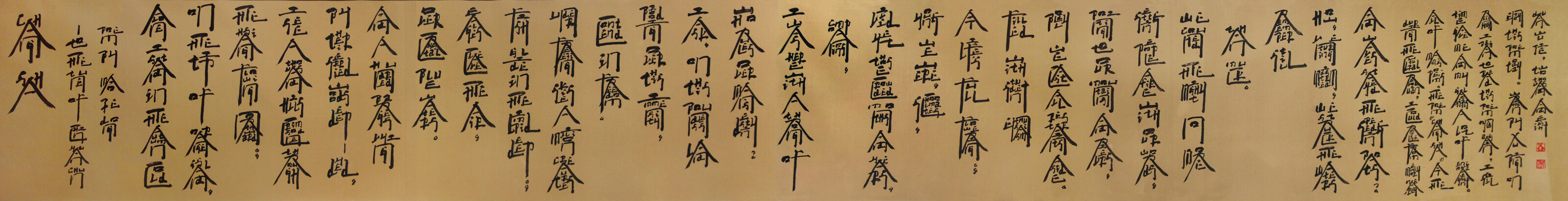 喻紅,速食盒,2006,紡織顏料/軟緞,400 x 110 cm