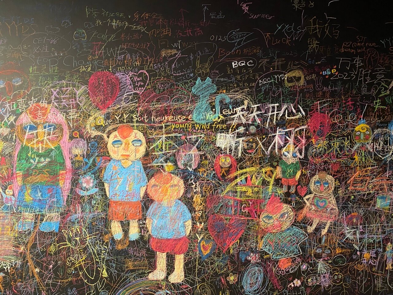 此外,展廳在互動區還特設了“帶你喜歡的yy回家”的海報活動,讓每個來觀展的人都能免費把自己喜歡的那張yy作品海報帶回家,這也是本次展覽給予每位觀者的回饋。對於孩子們來說,除了帶走最喜歡的“yy”,展覽也為所有來參觀的孩子們設置了塗鴉牆,讓孩子們畫出自己心中的“yy”。