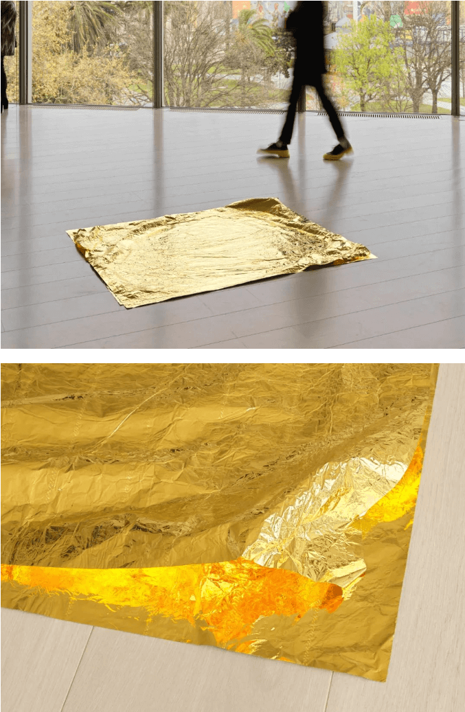 房間裡的地板上還展出了《一對金毯(給羅斯和菲利克斯)》(Gold Mats, Paired (For Ross and Felix), 1994/2003),這是一個由兩片長方形的退火純金組成的雕塑。這是獻給她已故的藝術家摯友費利克斯·岡薩雷斯-托雷斯(Felix Gonzalez Torres)和他的愛人羅斯·萊科克(Ross Laycock)的作品,揭示了愛、哀悼和友誼的狀態。