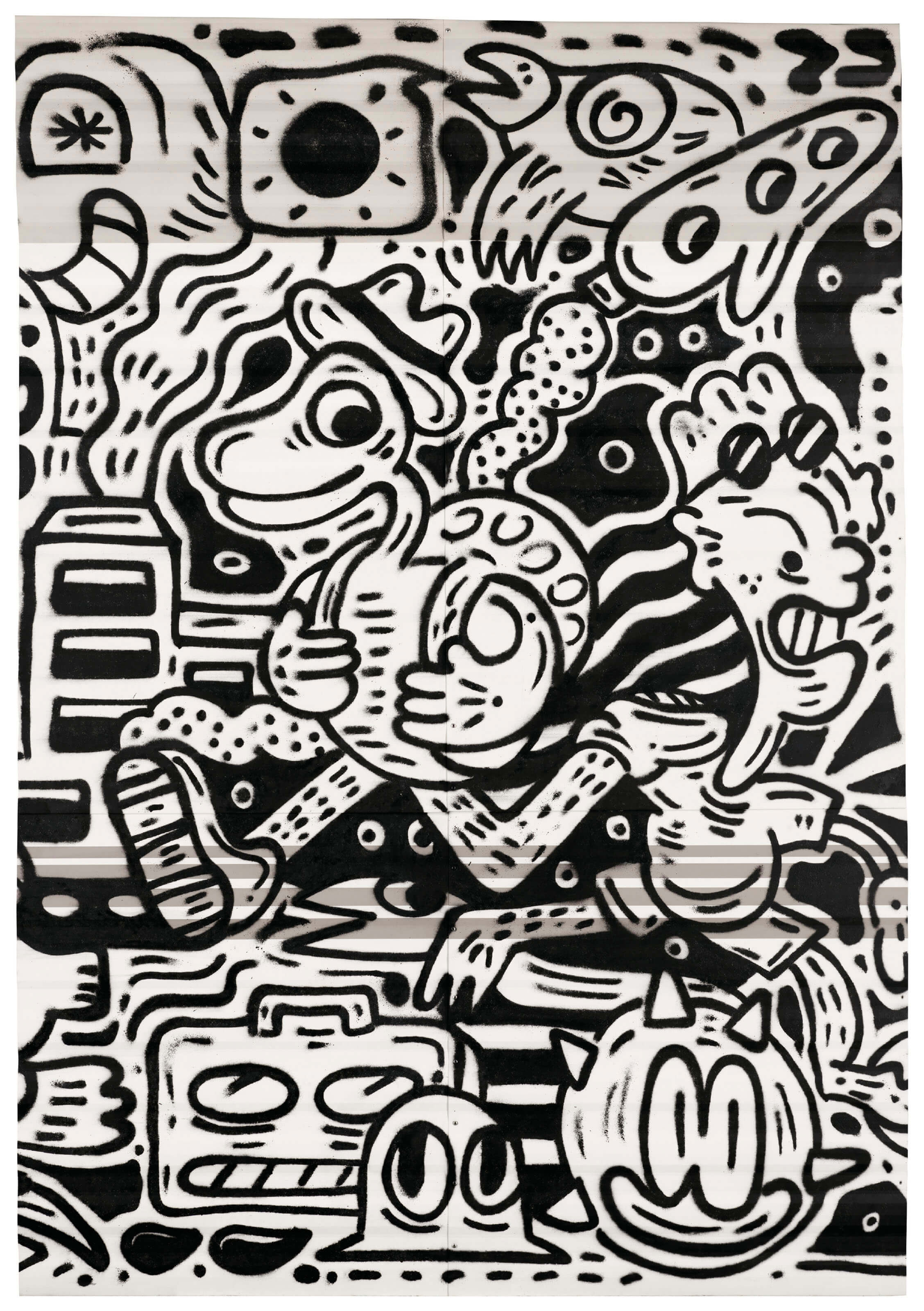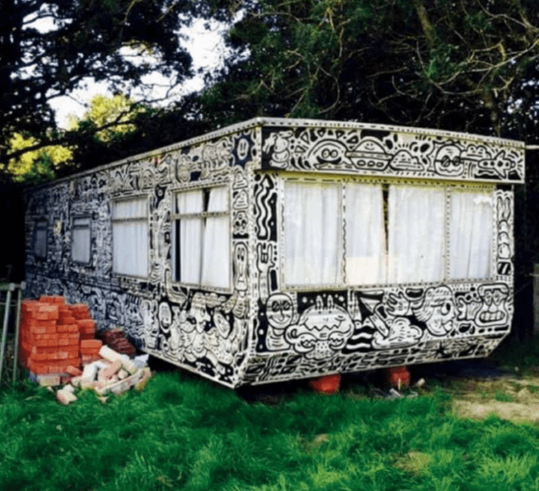 Mr Doodle將他的幻想世界描繪在非傳統的材質之上,而媒介本質作為一輛旅行車更是能帶領觀眾在30件作品中游歷,一探藝術家所創造的奇幻空間。他表示:“塗畫世界(Doodle World)就是我的幻想空間,所有人物角色都存在於這空間內,更是活在其中。”將一輛平平無奇的旅行車轉化成《瘋狂旅行車》一作,就如草間彌生以她專屬的卵石狀圓點重新詮釋單調的盆栽。 《瘋狂旅行車》完成於2015年,為MrDoodle的早期作品,當中黑白色的塗畫圖案面積較大,而藝術家近期作品中的人物角色則比較細小和密集。