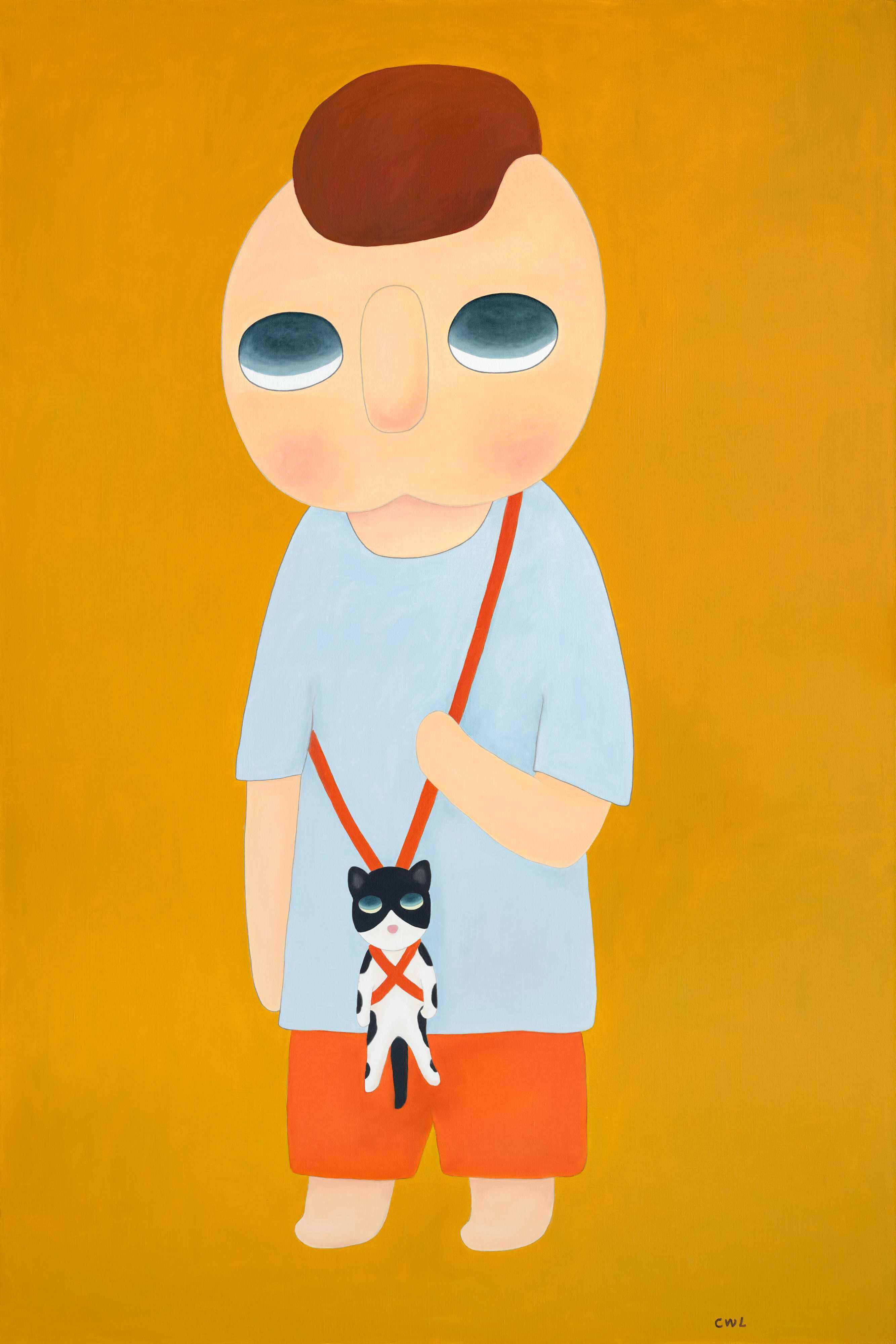 A:作品之一是《忠誠》,是一個200X300cm的大尺幅作品。這幅作品原本想在今日美術館展出,但歐洲極力希望它去威尼斯展出。因為威尼斯的“面具貓”形象與《忠誠》中yy身上的寵物貓極其相似,這讓他們有一種親切感。