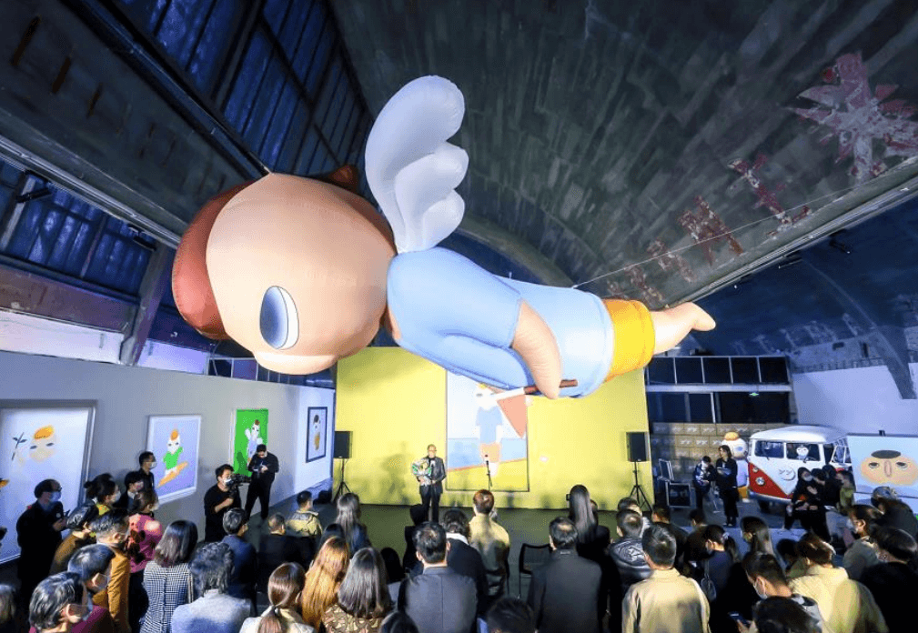 今年的展覽會有幾件大的作品,其中室外會有一個高10米的yy坐像充氣模型放在展覽門口,室內有一個帶有翅膀的yy之夢充氣模型會漂浮在空中。另外一個亮點是yy元宇宙的作品,使得作品呈現更加多元化、展示了元宇宙發展的前沿話題,為將來的科技公司沿著yy元宇宙進行擴展提供了更多的可能性。