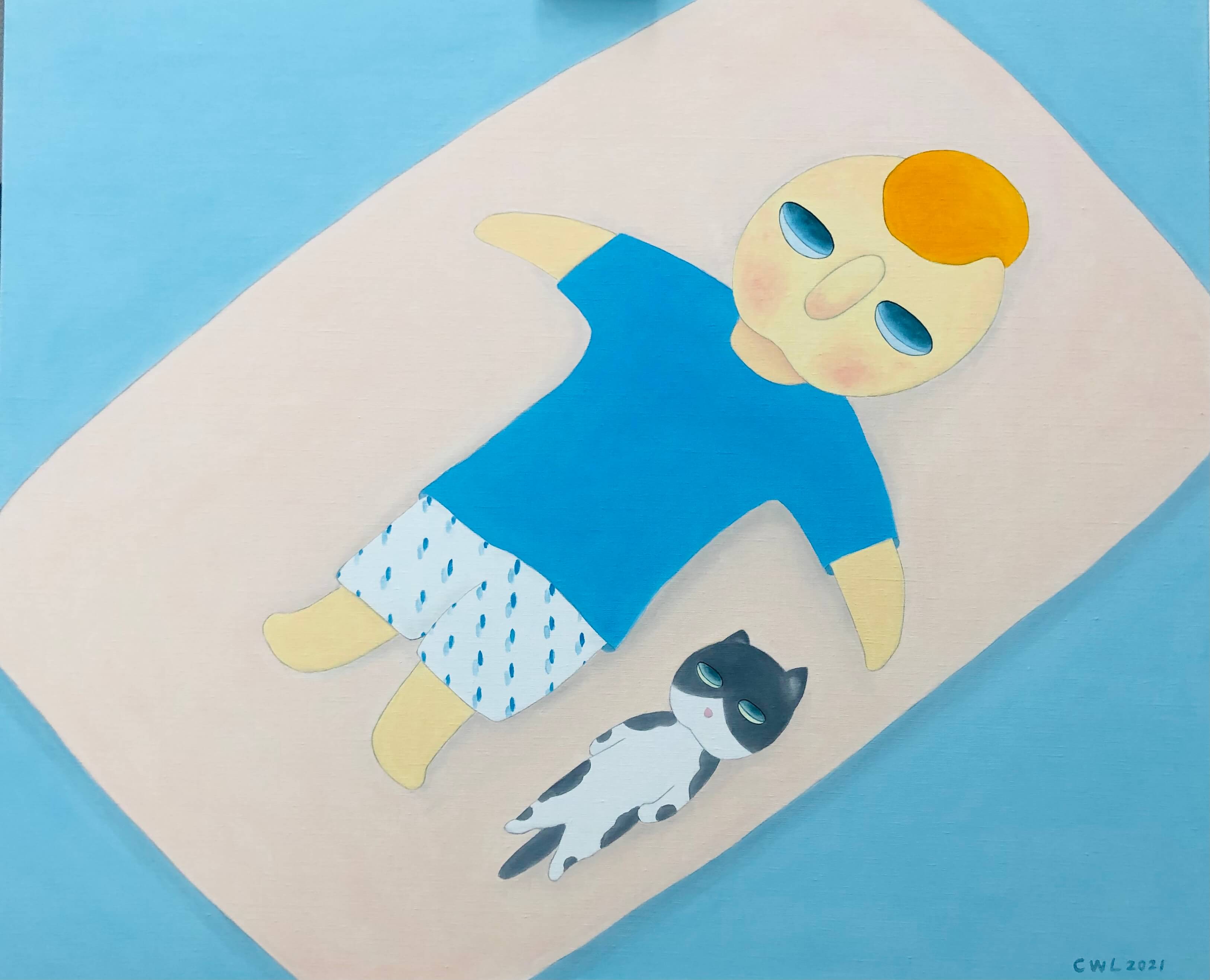 我的創作就像一個旅行者,社會的不斷發展以及人們在當下的生活現像都會帶給我創作的靈感。 譬如,《躺平》看似是年輕人拒絕內捲的一種狀態,而這何嘗又不是一種從容的人生狀態,暫時的躺平是為了積蓄能量,以更好的出發;《掃碼時代》是當下人們幾乎每天都會遇到的生活場景,二維碼是貫穿於人們生活與出行的重要工具之一;《內捲·雞娃》也是來源於網絡熱詞,是對社會現象的反思與觀察,還有《我想去旅行》是反映大家在經歷疫情之後,起伏的心裡變化。這些作品都是我對於社會的認知和個人感受,我想通過這些作品來記錄我們的時代。