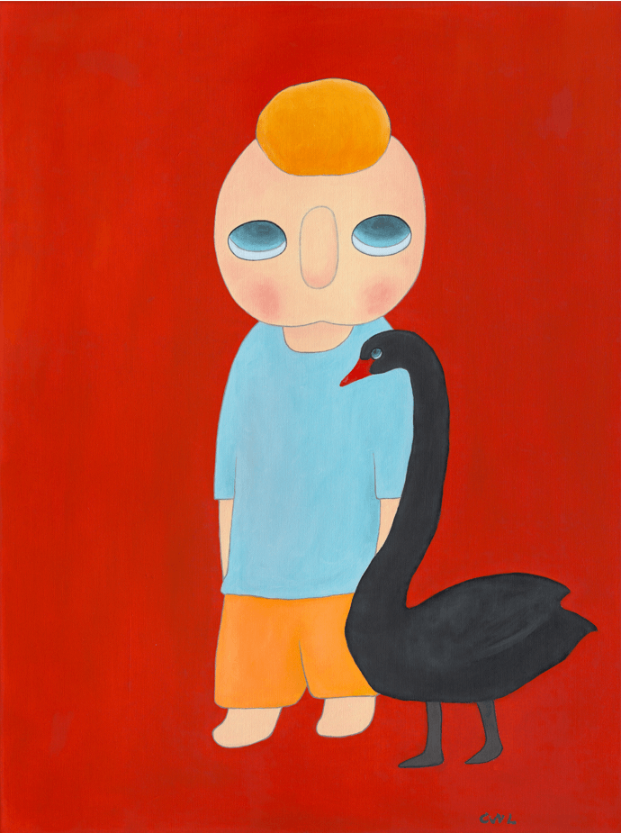 在作品《同行》中,yy旁邊有一隻黑天鵝,非常契合當下的環境。經歷了不可預料的疫情和悲慘的戰爭,每個人身邊都有可能伴隨著一隻黑天鵝。