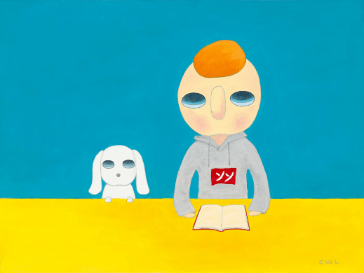 “yy”眼神空寂幽遠,看起來又非常可愛,它無嘴無耳,是藝術家蔡萬霖在不聽不說的禪修靜思中獲得的靈感,也是藝術家本人的自畫像,作為一種表達方式,闡釋著藝術家的哲思。