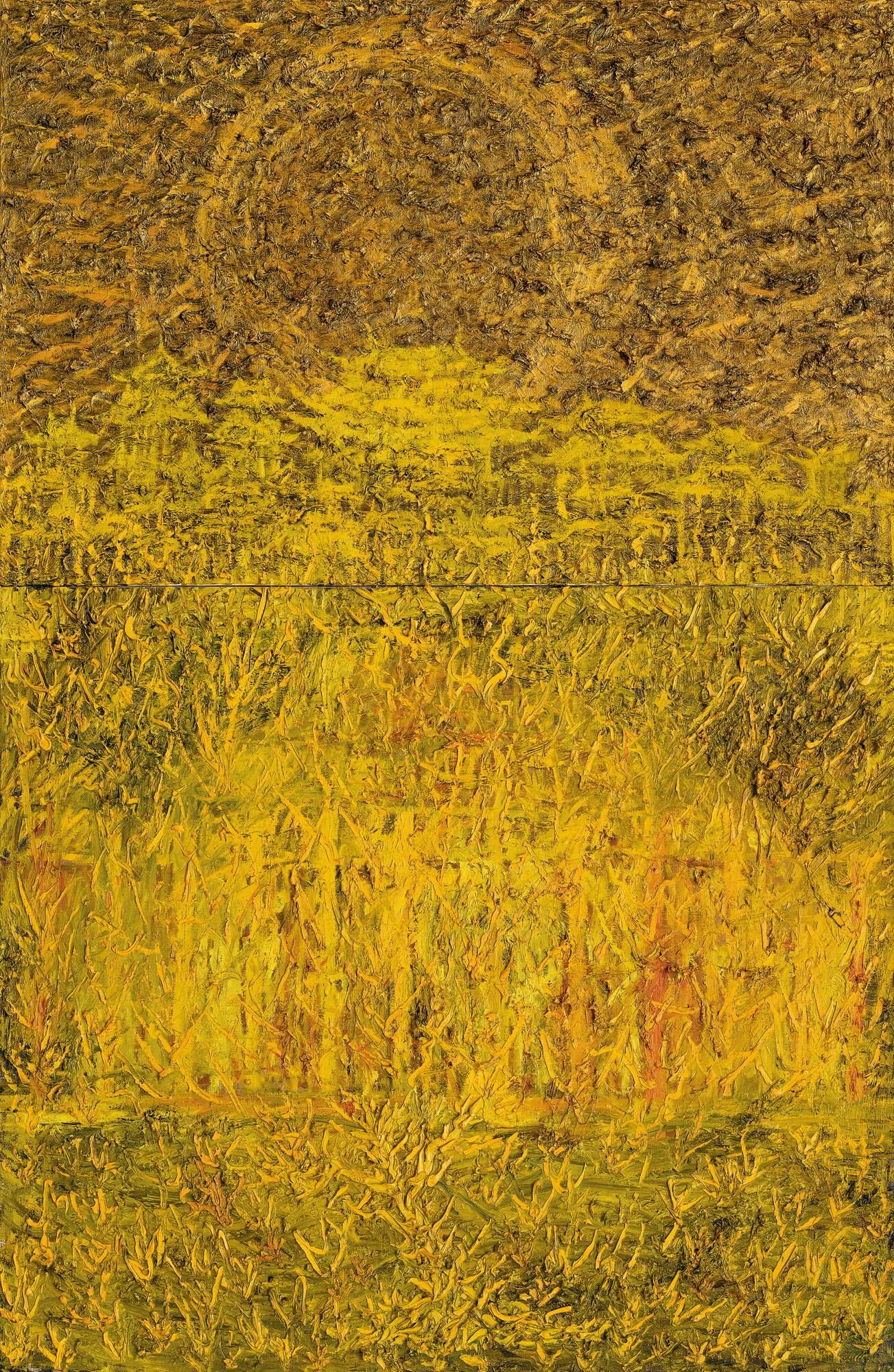 Paintings of Ouyang Chun The road of development has gone through three important periods, the Xi'an claustrophobic creation period (1995-2022), the stimulating painting period (2002-2006), and thematic painting period (2007-2015). During his time in Xi'an, Ouyang Chun was always in a state of being alone and thinking alone, contemplating art by reading books on art history and painting landscapes. At the end of 2002, Ouyang Chun left Xi'an and moved to Beijing. Ouyang Chun entered the period of explosive painting and the heyday of theme painting.