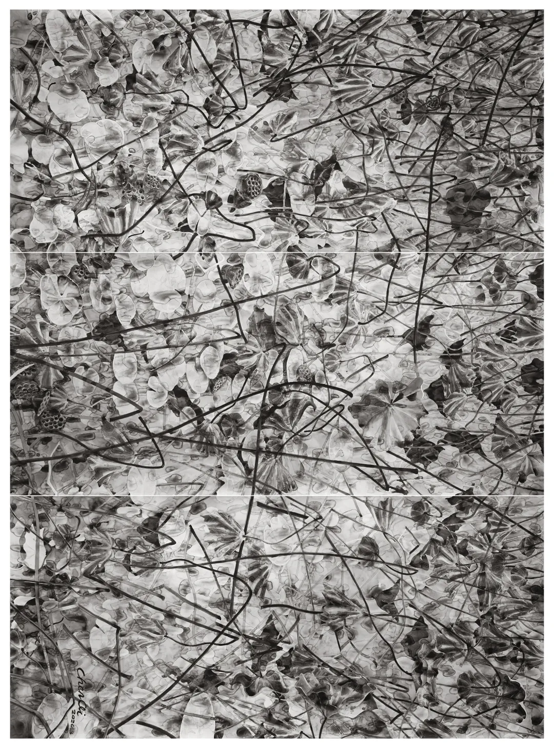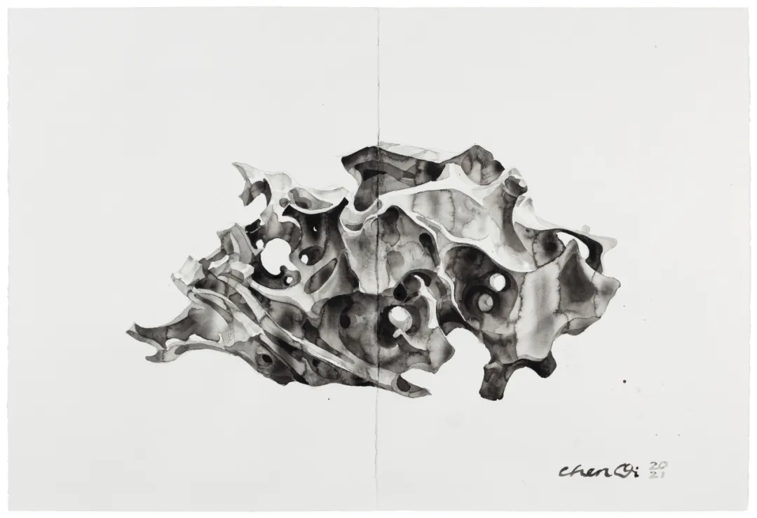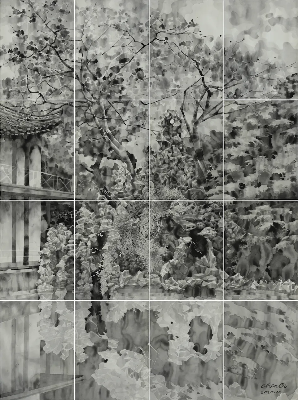 在從事高度嚴謹的水印木刻創作30餘年後,陳琦再度意識到自由作畫的率性之美,重新回到水墨實踐中。創造力的充沛和對材料的敏感,令他將「無用之用」的水痕轉化為「自然而然」的筆墨境界,繼續建構出獨特的視覺語言體系。